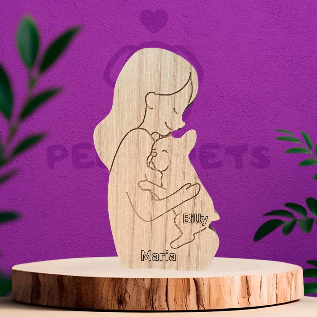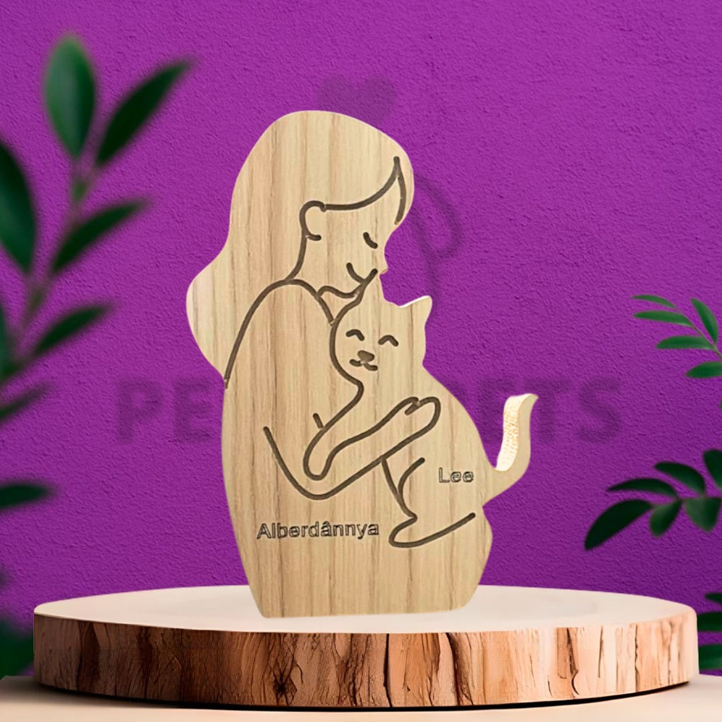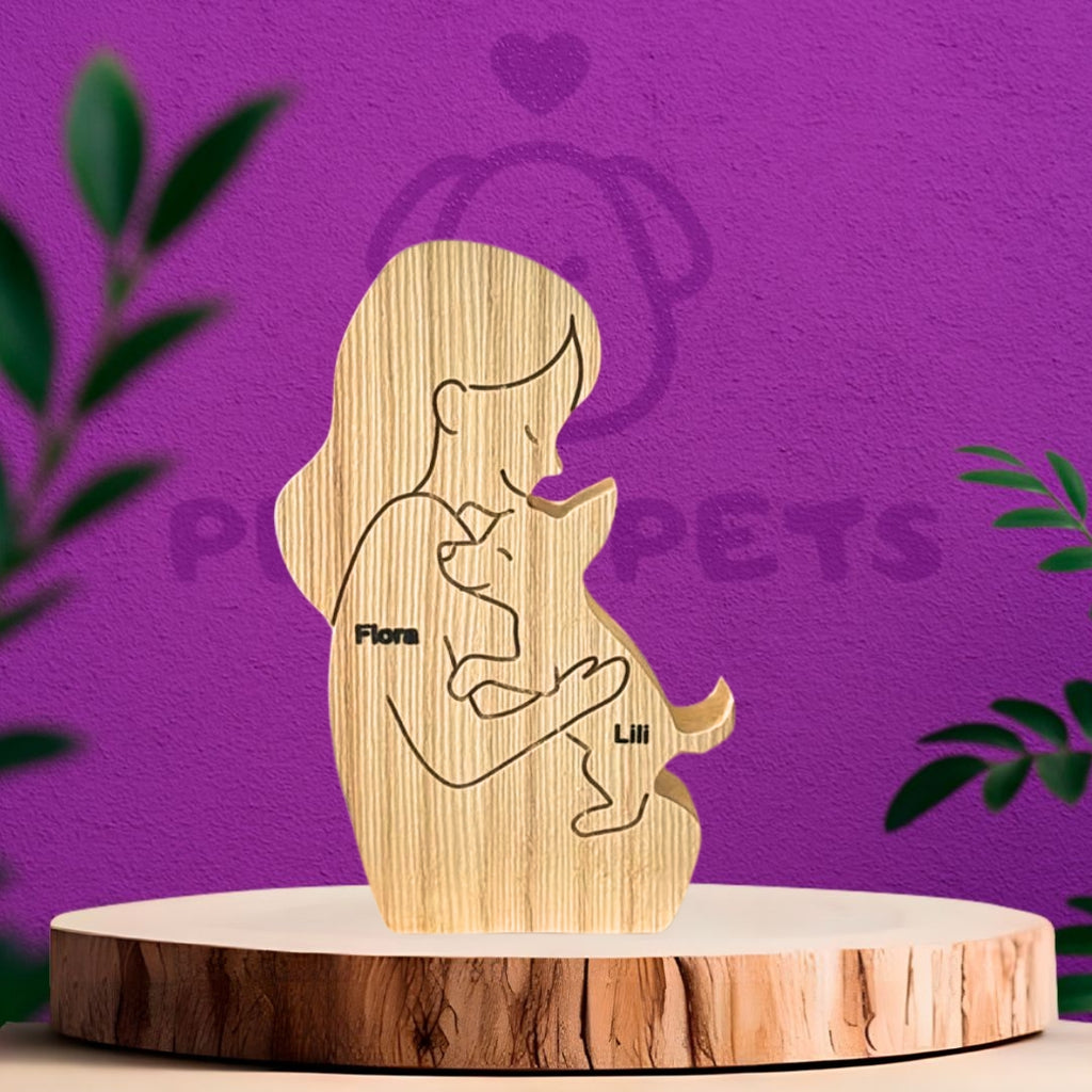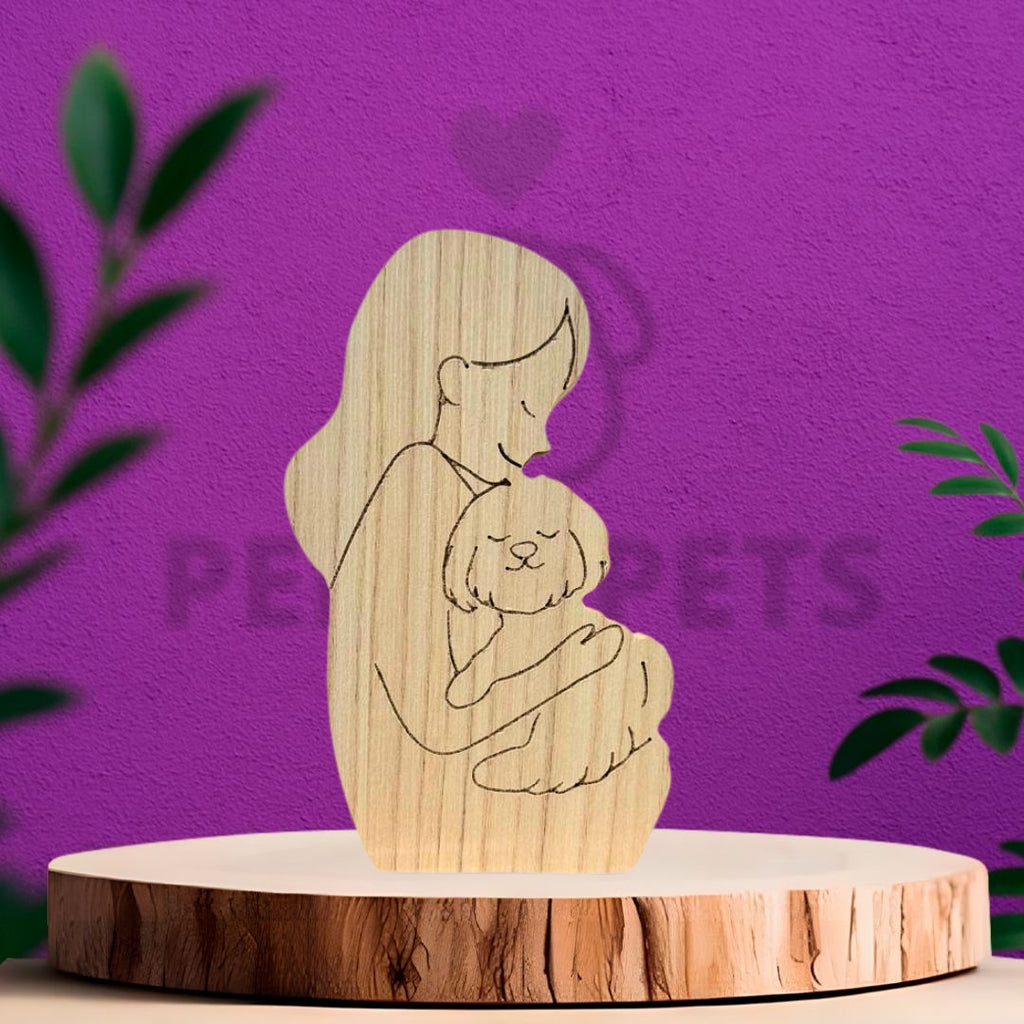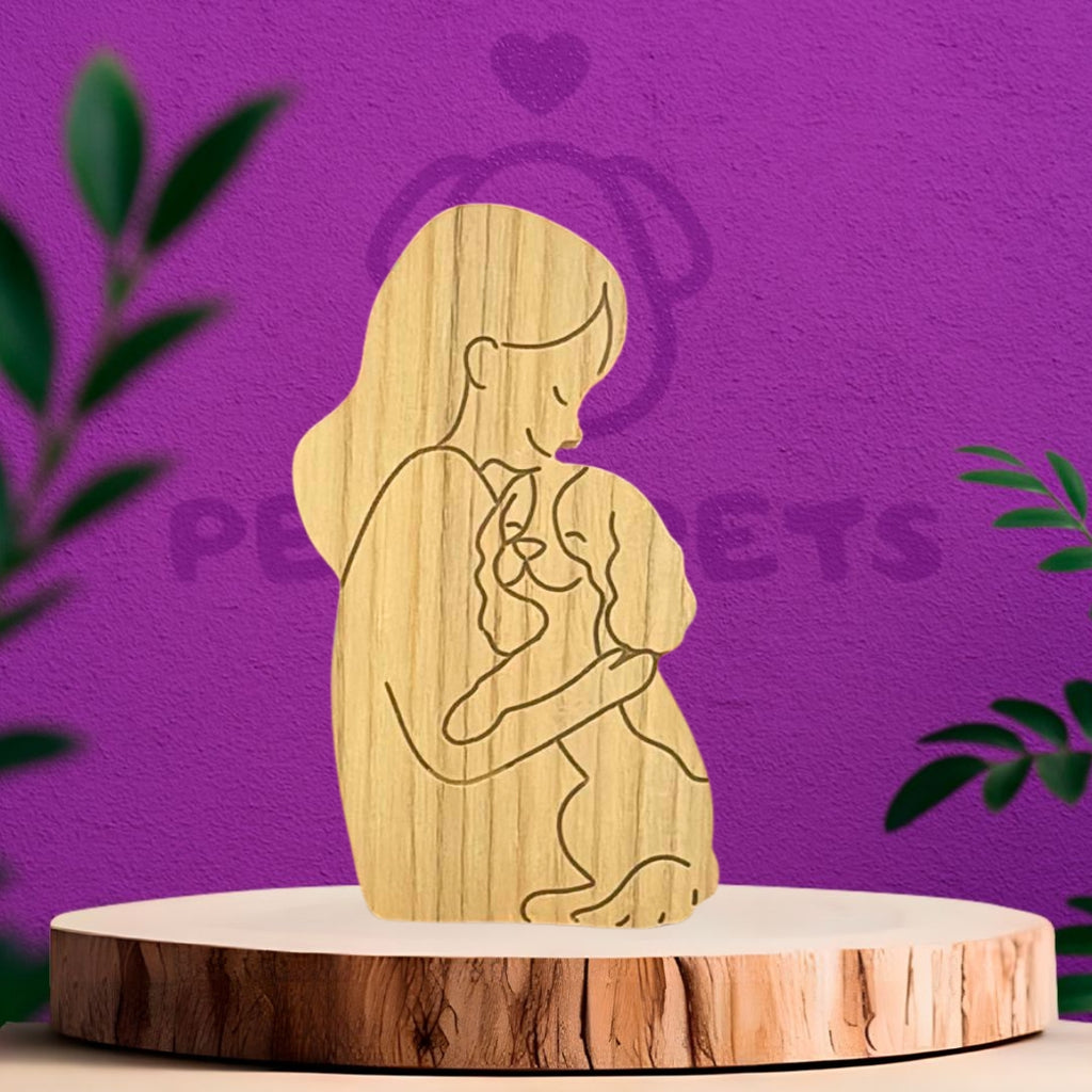 The Pelos Pets Wooden Sculpture is an exclusive and handcrafted product that portrays your pet and you in a high-quality piece of wood. You can choose between different sculpture models