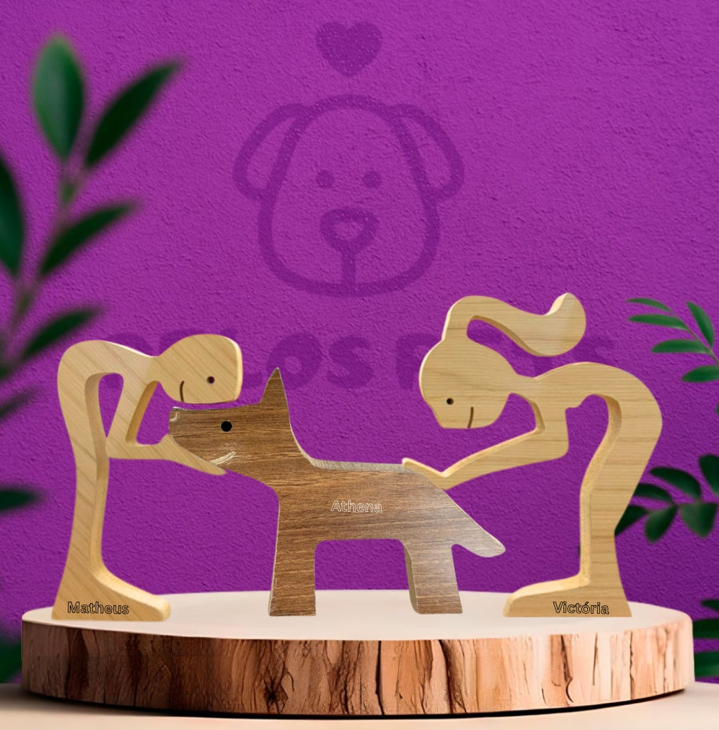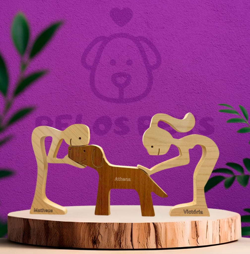 Escultura em Madeira Humano e Pet Sem Raça Definida