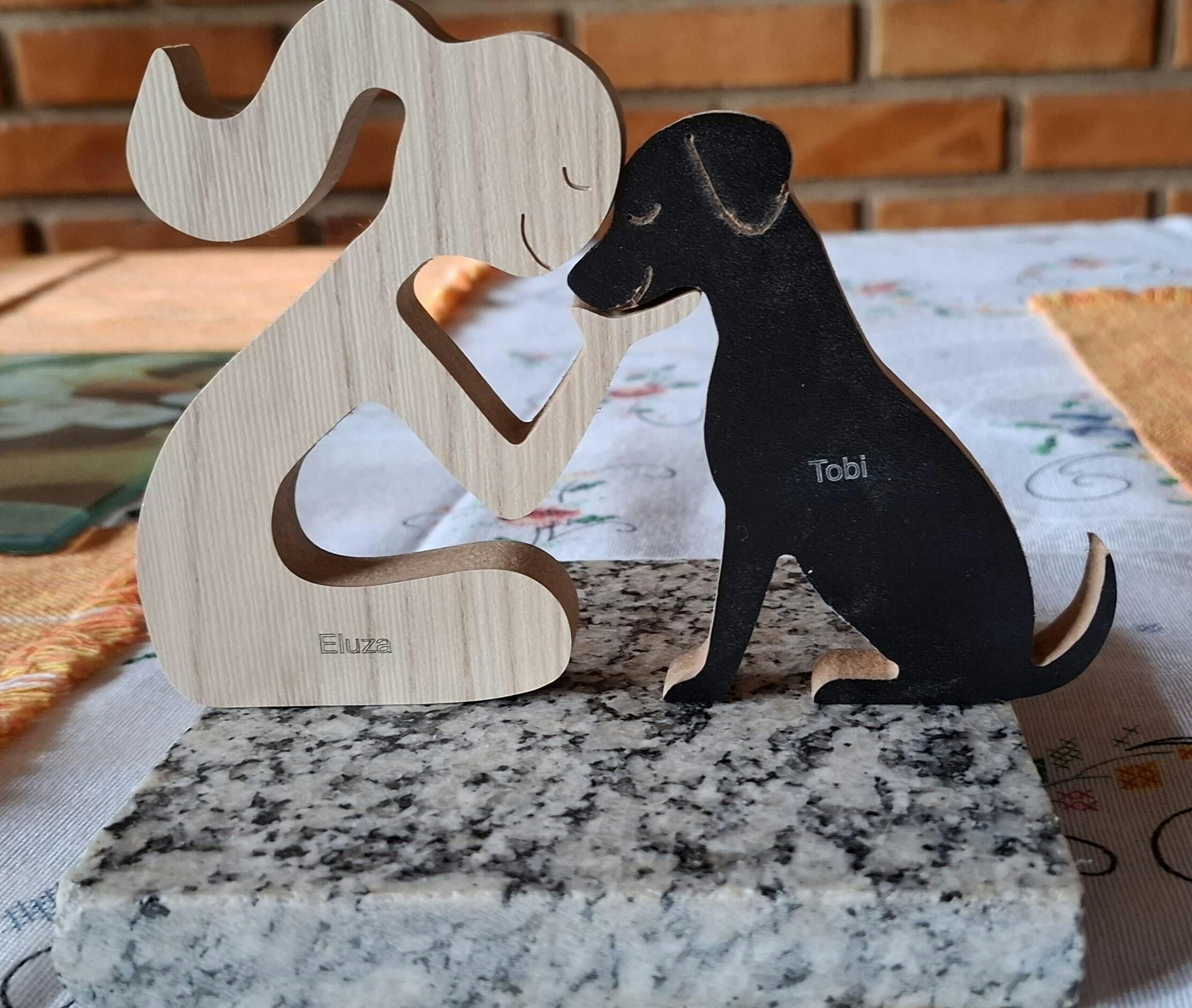 Além disso, você pode gravar o nome do seu animal de estimação e o seu na escultura, tornando-a ainda mais especial e personalizada. Assim, você terá uma lembrança única e duradoura do seu amigo peludo.